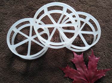 塑料扁環的高徑比(bi)為0.2-0.4,取消了階梯(ti)環的翻(fan)邊(bian),采(cai)用內彎(wan)弧形筋片來(lai)提高填(tian)料強度(du),在亂(luan)堆時能(neng)(neng)有(you)(you)序排列(lie),流(liu)道結構合(he)理(li),壓降(jiang)低,在處理(li)能(neng)(neng)力和傳質性能(neng)(neng)上均有(you)(you)所改(gai)善。