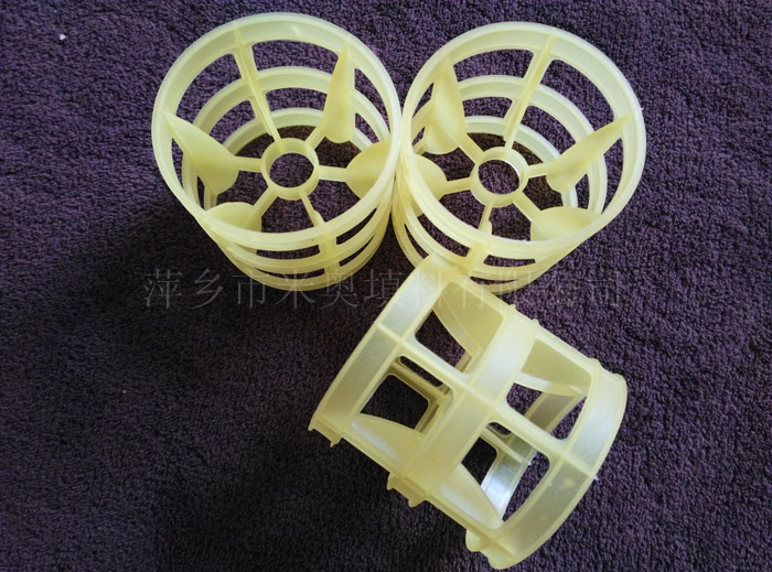 塑料射流環也叫阿爾法環主要采用PP、增強PP等塑料原料加工而成。主要是在鮑爾環填料的基礎上經模具加工改進,與鮑爾環廂比其環壁的開口方式不同。它伸向環內的肋片,使窗口形成兩個方向相反的開口錐體,由于錐體導液流與氣流在環內聚集和分散,產生強烈的擾動。因此,該環具有傳質效率高液體分布性好的優點,特別在相當大的氣速范圍內分離效率仍能保持恒定。