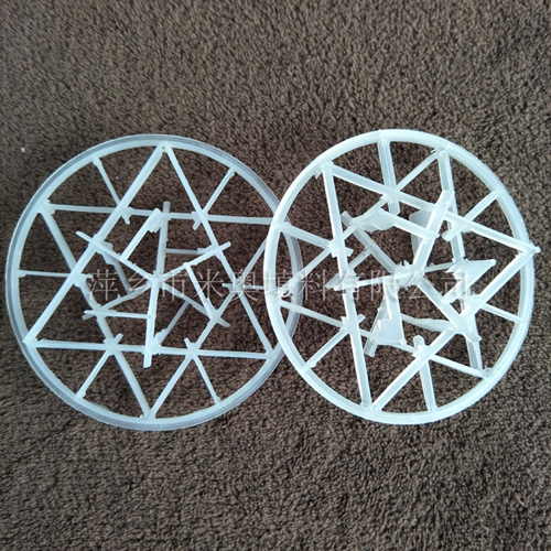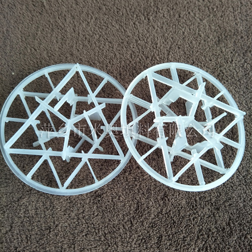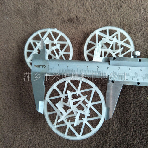 塑料雪花環具有空隙率大、耐熱、耐化學腐蝕,壓降和傳質單元高度低,泛點高、汽液接觸充分、比重小、傳質效率高等特點。在各種介質中的使用溫度為60-150攝氏度,廣泛用于石油、化工、氯(lv)堿、煤氣、環保等行業的填料塔中。