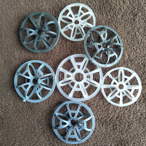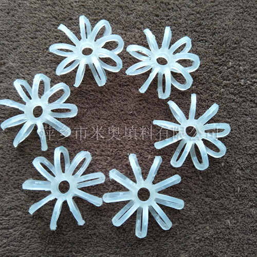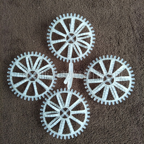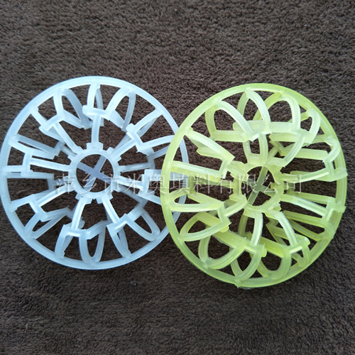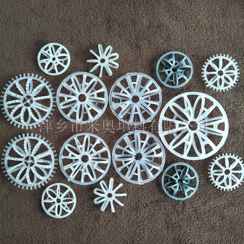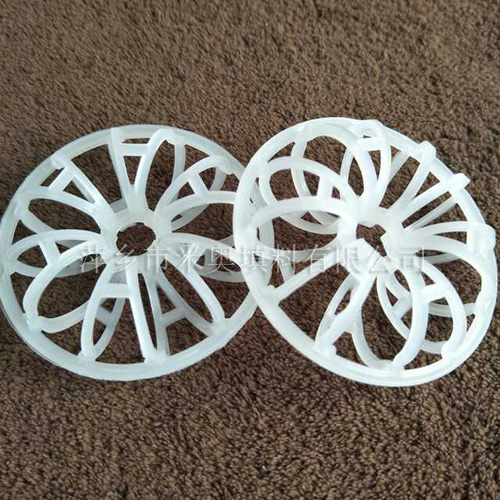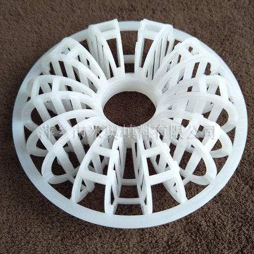 塑料花環填料早是由美國A.J.Teller于1954年研制開發出來的,故而常稱之為泰勒花環(TellerRosette)。由于填料的(de)空隙處能有較(jiao)高(gao)的(de)持液(ye)量,可(ke)使塔內液(ye)體的(de)停留時間(jian)較(jiao)長(chang),從而增(zeng)加了(le)氣液(ye)兩相的(de)接(jie)觸時間(jian),提高(gao)了(le)填料的(de)傳質(zhi)效率。 花環填料也(ye)稱梅花環填料塑料花(hua)(hua)環(huan)(huan)填(tian)料是由12個(ge)(ge)(ge)小圓(yuan)(yuan)(yuan)(yuan)環(huan)(huan)按徑(jing)向排列而組成(cheng)的一(yi)個(ge)(ge)(ge)大扁(bian)球體,很(hen)類(lei)似于(yu)一(yi)個(ge)(ge)(ge)螺旋形彈簧(huang)首尾相接繞成(cheng)的一(yi)個(ge)(ge)(ge)圓(yuan)(yuan)(yuan)(yuan)球體。有(you)(you)的小圓(yuan)(yuan)(yuan)(yuan)呈A字;有(you)(you)的在小圓(yuan)(yuan)(yuan)(yuan)和大圓(yuan)(yuan)(yuan)(yuan)邊沿還帶有(you)(you)齒;有(you)(you)的外圍沒有(you)(you)大圓(yuan)(yuan)(yuan)(yuan)圈,只有(you)(you)里面的小圓(yuan)(yuan)(yuan)(yuan)組成(cheng)等,客戶可根據各自的要求(qiu)訂購不同種類(lei)的花(hua)(hua)環(huan)(huan)。