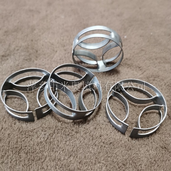 金屬內彎弧型筋角扁環的特點是:對流體的阻力小,而提供氣,液相接觸的表面大,從而已改善了填料的流體力學和傳質性能。所以金屬內彎弧型筋角扁環填料是一種通量大、壓降低、傳質效率高、操作彈性大的填料.