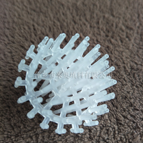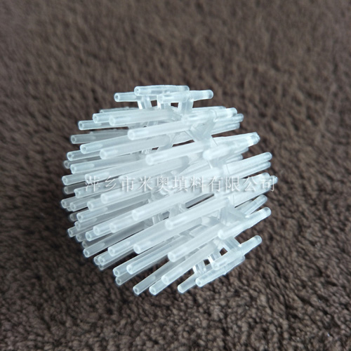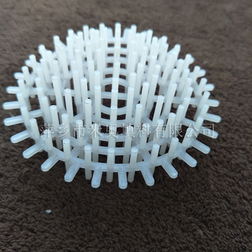 塑料海膽(dan)環填料也叫海膽球(qiu)填料(liao),表面帶刺,也(ye)叫(jiao)刺(ci)猬球(qiu)填料(liao)(liao),海膽環填料(liao)(liao)因它的外觀結(jie)構特(te)征(zheng),具有空隙率(lv)大,壓降(jiang)和傳質單元高度低,泛點高,汽(qi)液接觸(chu)充分,比重(zhong)小,傳質效率(lv)高等特(te)點,塑料(liao)海膽(dan)環填料(liao)適(shi)用于(yu)各種洗滌(di)塔、凈化塔、吸收、分離、脫吸裝置、常減(jian)壓裝置、合成(cheng)氨脫碳(tan)、脫硫系(xi)統、乙苯分離、異辛烷(wan)/甲苯分離等。